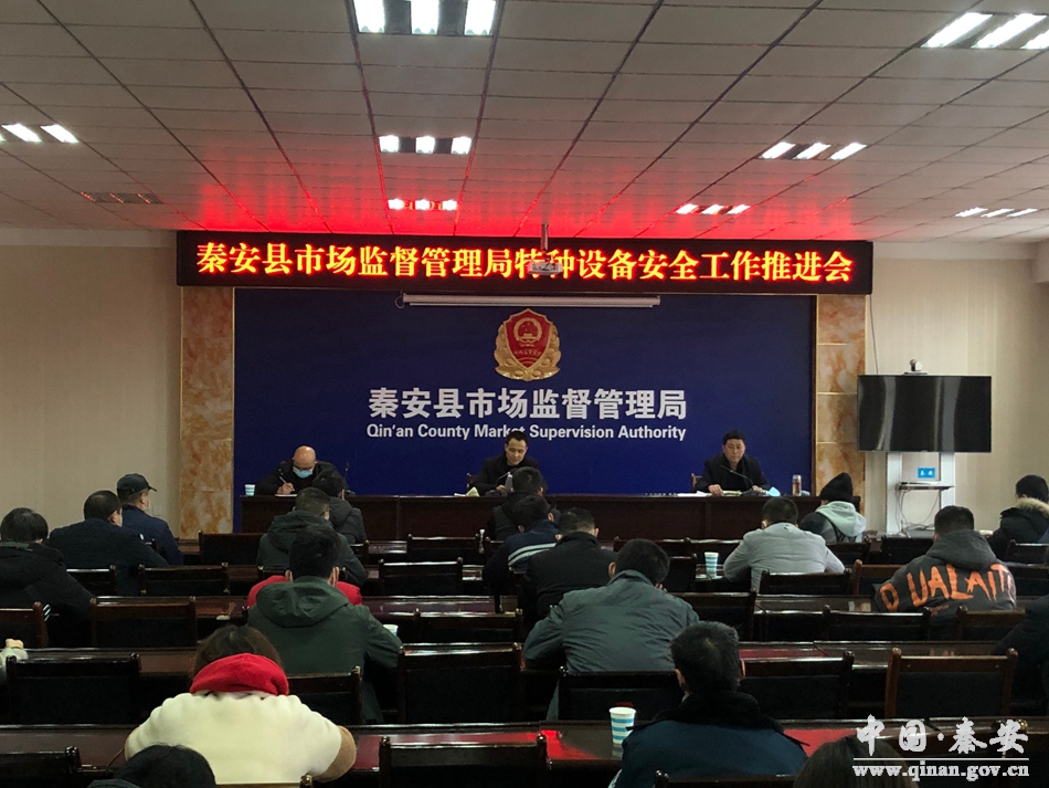 1月25日,秦安县市场监管局组织召开春节期间特种设备安全工作推进会,对当前特种设备安全监察保障工作进行再动员、再部署。辖区各大宾馆酒店、医院、大型商场超市及居民小区等特种设备使用单位负责人,电梯维保单位负责人共计40余人参加会议。