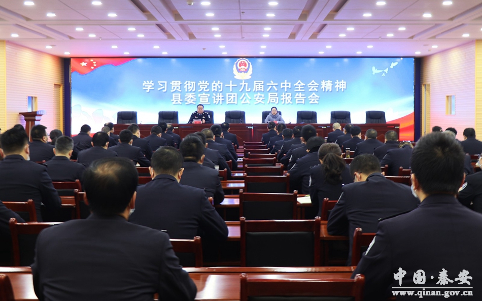 为深入学习宣传贯彻党的十九届六中全会精神,根据秦安县委宣传部统一部署安排,结合庆祝第二个“中国人民警察节”忠诚教育和2022年1月份主题党日有关活动内容,1月7日,秦安县公安局邀请市委讲师团成员、县委党校讲师王冬平宣讲党的十九届六中全会精神。