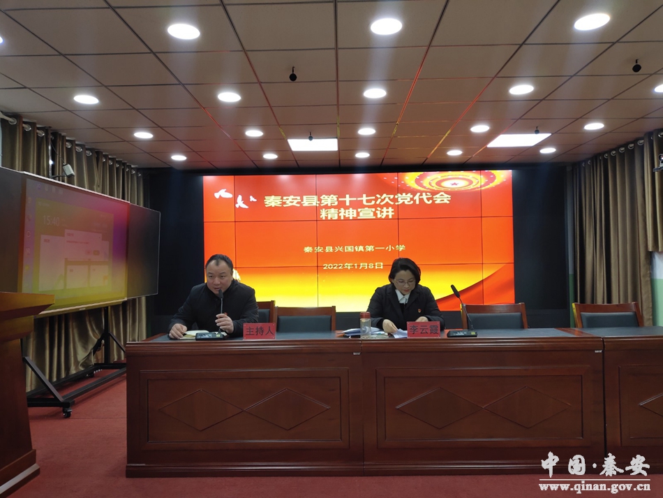 秦安县兴国一小党支部书记、校长李云霞为全体教师作了《中国共产党天水市第八次代表大会》《秦安县第十七次党代会》《秦安精神解读》宣讲报告会。宣讲中,李云霞围绕贯彻落实秦安县第十七次党代会精神,结合学校教育工作实际,畅谈了自己的学习心得。