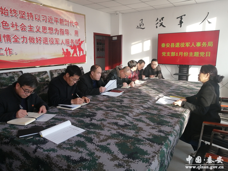 新年伊始,实干开局。1月10日,秦安县退役军人事务局机关党支部开展1月份主题党日活动,组织全体党员干部认真学习习近平主席二〇二二年新年贺词,从“民之所忧,我必念之;民之所盼,我必行之”的铮铮誓言中感受大国领袖的人民情怀和一如既往的人民立场;从“让大家过上更好生活,我们不能满足于眼前的成绩,还有很长的路要走”的温暖话语中体会中国共产党人不变的价值追求和初心使命;从“中华民族伟大复兴绝不是轻轻松松、敲锣打鼓就能实现的,也绝不是一马平川、朝夕之间就能到达的”精准判断中看到实现中华民族伟大复兴中国梦的正确行动方向,教育引导党员干部不断增强干事创业的使命感、责任感、紧迫感,以更高站位担当新使命,在新起点上铆足干劲,为全县退役军人事务高质量发展展现新作为,做出新贡献。