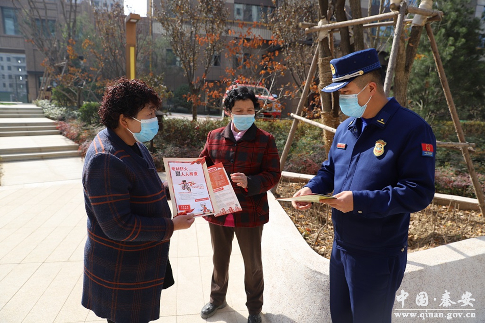 期间,秦安县消防救援大队宣传人员通过张贴海报等方式,提醒小区住户不要将电动车停在公共门厅、楼梯间等疏散通道上;在日常工作、生活中要注意用火用电安全,不私拉乱接电线等,并向他们讲解电动车违规充电、电器火灾以及各类取暖设备火灾的危险性、日常火灾防范措施、初期火灾的扑救方法和逃生自救等消防安全常识,引导广大群众重视火灾预防,及时发现并消除身边存在的各类火灾隐患,做到 “学消防、知消防、会消防”,为自己及家人的安全增添一份保障。