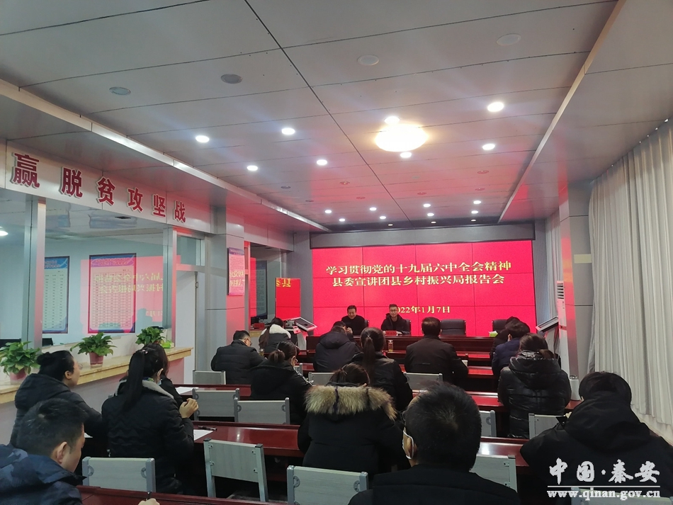 为深入学习贯彻党的十九届六中全会精神,引导局机关党员干部把思想和行动统一到全会精神上来,持续巩固拓展脱贫攻坚成果、接续推进乡村振兴,1月7日,秦安县乡村振兴局邀请县委宣讲团举行了学习贯彻党的十九届六中全会精神宣讲报告会。