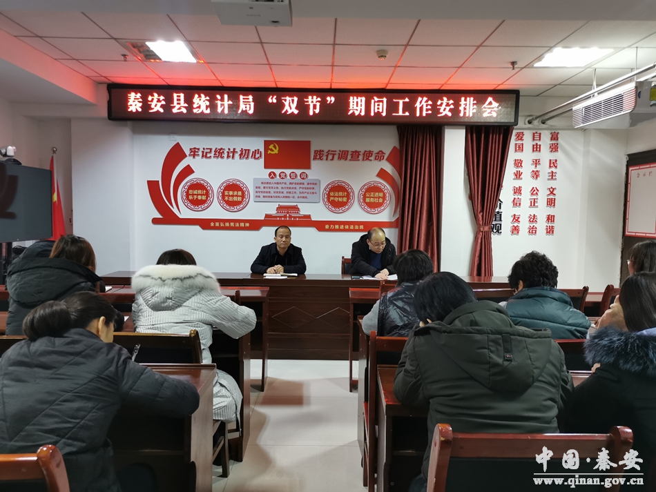 为深入贯彻落实县委、县政府对2022年元旦春节期间有关工作的部署要求,12月31日,秦安县统计局召开“双节”期间工作安排会。全体干部职工参加会议。