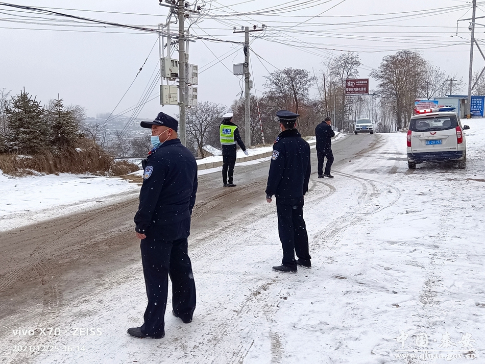 12月25日,秦安县气温骤降,迎来大面积降雪天气,部分路段出现结冰现象,给群众出行带来不便。为切实做好近期雨雪天气安全防范工作,减少因雨雪天气导致交通事故的发生,秦安县公安局刘坪派出所结合辖区实际道路情况,联合刘坪镇交管站全员出动,积极应对,全力保障降雪天气道路交通安全畅通。