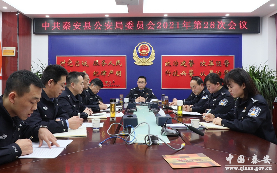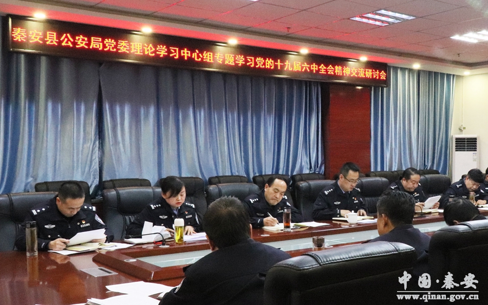 12月21日晚,秦安县公安局召开党委理论学习中心组(扩大)会议,围绕学习贯彻党的十九届六中全会精神开展专题交流研讨。秦安县政府副县长、公安局党委书记、局长薛天胜主持会议并讲话。