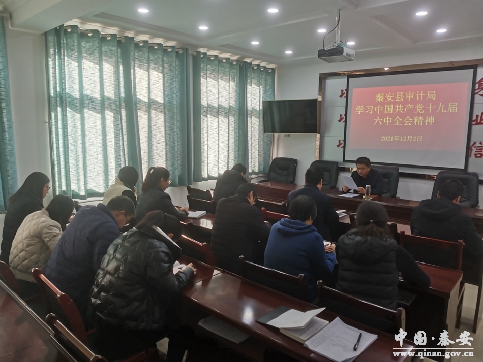 近期,秦安县审计局召开专题学习会议,集中学习党的十九届六中全会精神,重点学习了中国共产党第十九届中央委员会第六次全体会议公报、《中共中央关于党的百年奋斗重大成就和历史经验的决议》等内容。12月9日,局领导班子以“深入学习党的十九届六中全会精神”为主题,就如何贯彻落实好党的十九届六中全会精神、如何将全会精神和审计工作实际结合起来进行了研讨交流。