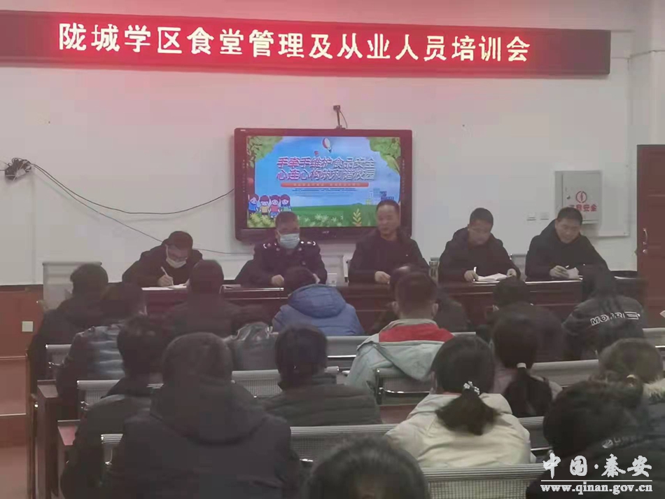 12月4日,秦安县陇城镇市场监管所对学区中小学食堂管理及从业人员进行了食品安全知识培训,进一步加强校园食品安全监管,切实提高校园食堂食品安全管理者和从业人员的食品安全意识,有效消除学校食堂食品安全隐患,筑牢学校食品安全防线。