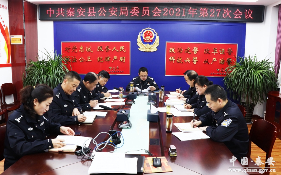 11月18日晚,秦安县公安局召开第27次党委会议,集体学习《中共中央关于党的百年奋斗重大成就和历史经验的决议》、11月16日出版的第22期《求是》杂志发表的习近平总书记重要文章《坚持用马克思主义及其中国化创新理论武装全党》、《公安机关人民警察誓词》,认真传达了省公安厅《关于全面彻底肃清孙力军等人流毒影响的通知》精神。秦安县政府副县长、县公安局党委书记、局长薛天胜主持会议,在家局党委班子成员参加会议。