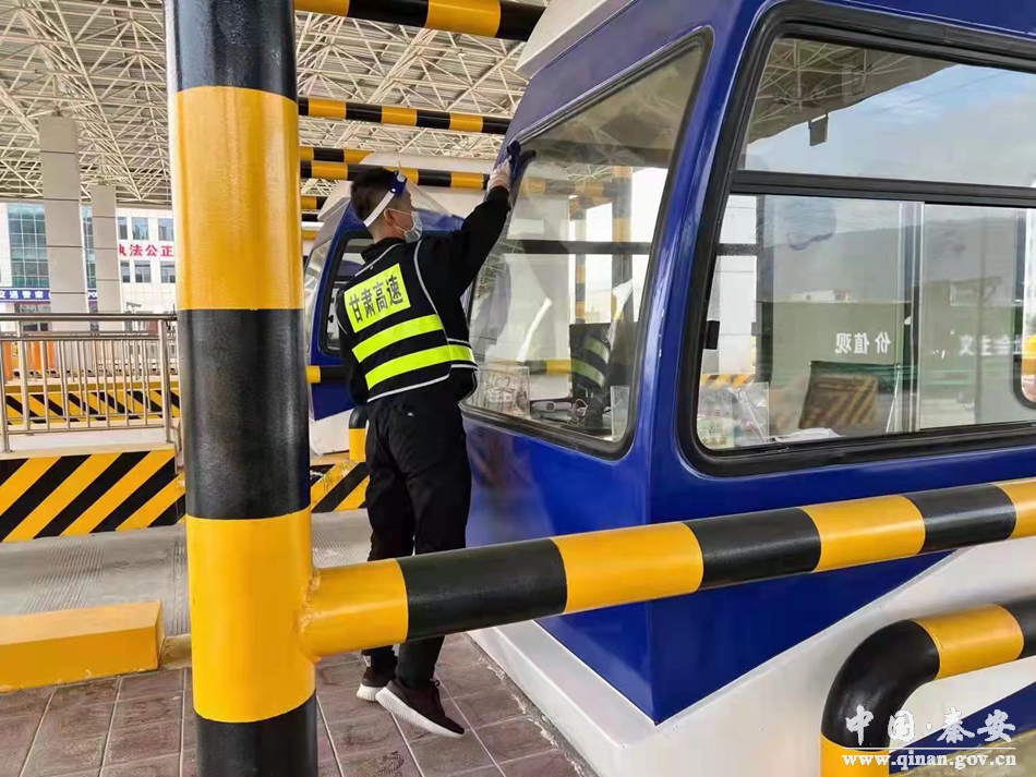 疫情防控我先行。在各收费站出入口张贴“国务院大数据行程卡”二维码,持续做好过往车辆的测温扫码工作,经查验为黄码、红码人员果断采取措施及时联系属地联防联控机构快速处置。在路段内和收费站、服务区可变情报板滚动播放疫情防控宣传标语,并设置醒目的引导提示标志。