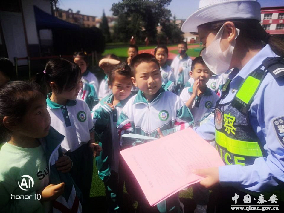 为切实做好“一盔一带”宣传活动,增强师生交通安全宣传教育,提高学生自我防护能力,有效预防道路交通事故的发生。10月18日,秦安县公安局交警大队民警在辖区第五小学学校门口向学生发放《“一盔一带”安全文明出行倡议书》,进行交通安全宣传,增强广大师生的交通安全意识和文明交通意识。