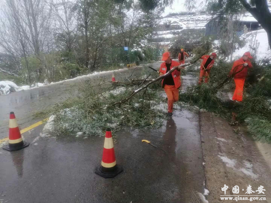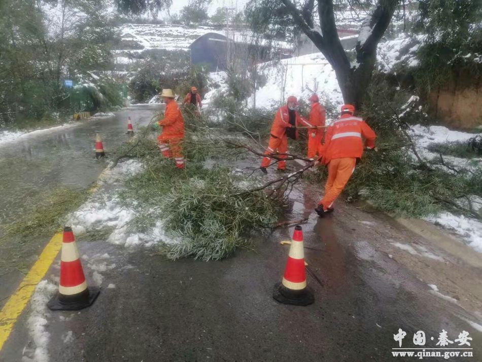 该段值班人员在巡查路况时发现S304线、S220线、S207线部分路段因降雪导致树枝侵入路面,严重影响人民群众出行和行车安全。发现问题后及时上报值班领导,值班领导迅速安排部署各养管站及时到达现场进行移除侵入路面上的树枝和积雪。