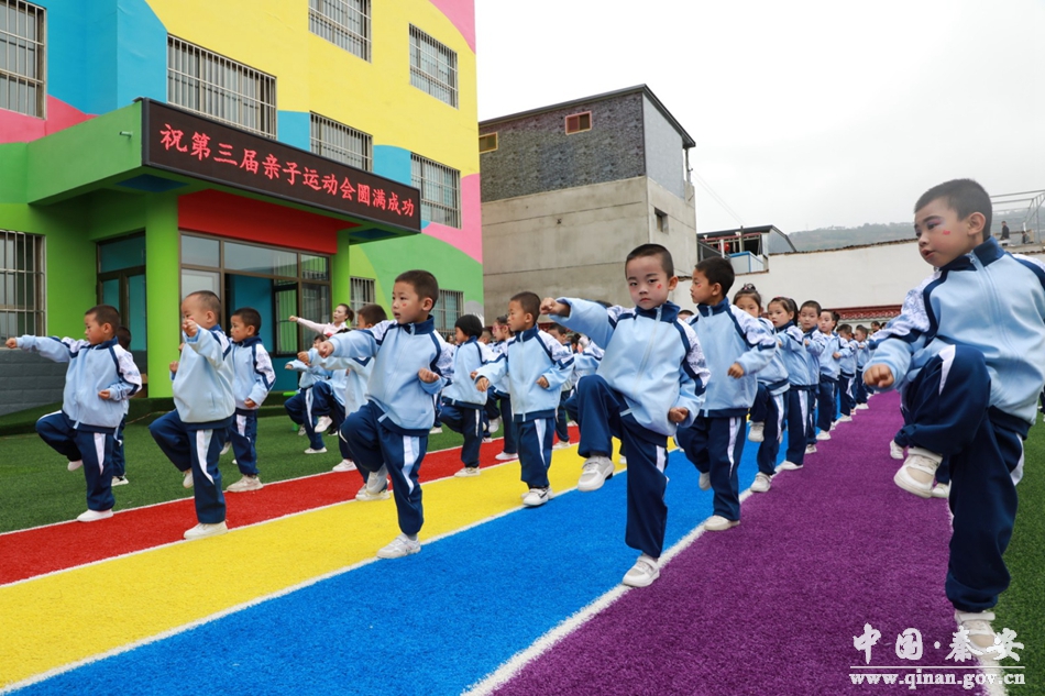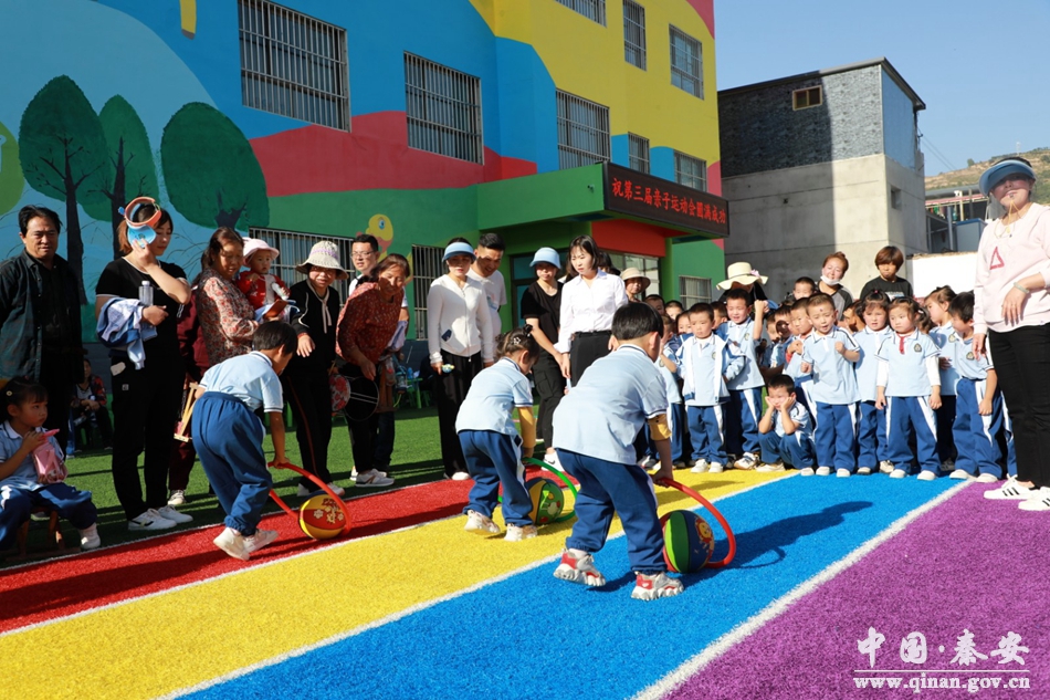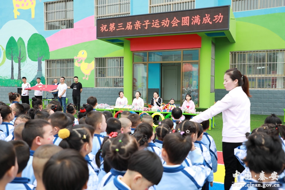运动会在孩子们表演的团体操中拉开了帷幕,竞赛包括游戏“猪八戒背媳妇”“母鸡下蛋”“开火车”"袋鼠跳""贪吃蛇"、踩气球等众多项目。赛场上的孩子和爸爸妈妈一起奋勇争先、努力拼搏,旁边的家长和孩子们不断地加油喝彩、不断地助威鼓劲,助威声、加油声、欢呼声此起彼伏。这是一场真正的快乐盛宴,家长和孩子在昂扬的乐曲中,共同参与了各项比赛,整个操场处处洋溢着家长和孩子们的欢声笑语。“小猪跑歪了”“绑带松了”……“两人三足”“赶小猪”等比赛不但培养了家长与孩子们的默契度,也为大家带来了快乐与幸福。