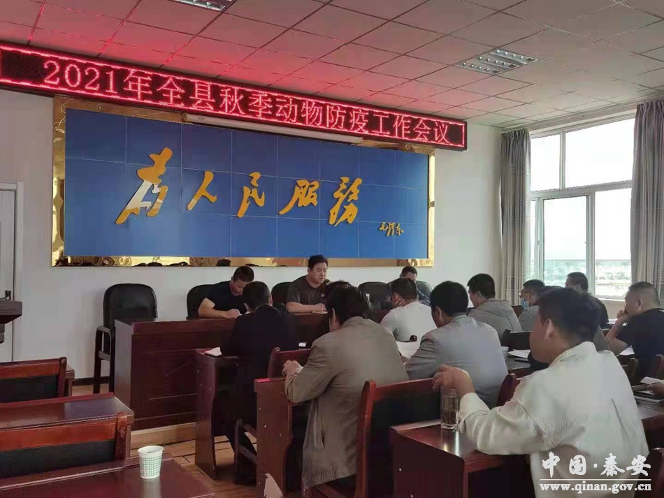 为深入贯彻落实省市2021年秋季动物疫病防控工作会议精神,秦安县畜牧兽医事务服务中心于8月31日召开全县秋季动物防疫工作会,县畜牧兽医事务服务中心相关人员、各乡镇站长共计58人参加了会议。