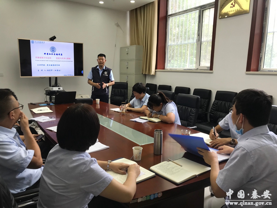 深入推进爱国卫生运动,倡导健康文明生活方式,提高职工自救互救的能力,践行健康生活方式。2021年8月20日,住房公积金中心秦安管理部组织开展了以“开展爱国卫生运动、促进人民身心健康”为主题的科普知识专题讲座,杨彦军主持,管理部全体职工及银行驻厅人员积极参加。
