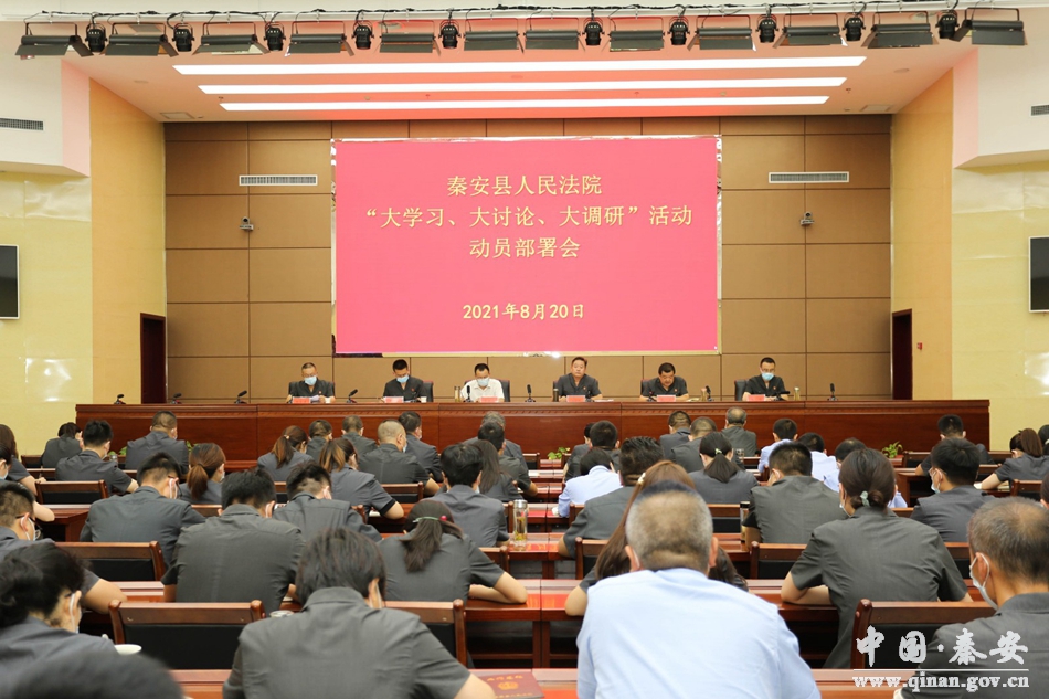 为了加快建设更高水平的法院队伍和争创更高质量的审判业绩,助推秦安法院各项工作再上新台阶,8月20日,秦安法院召开了大会,对“大学习、大讨论、大调研”进行动员部署。秦安县委政法委常务副书记漆振华参加及全体干警参加会议。