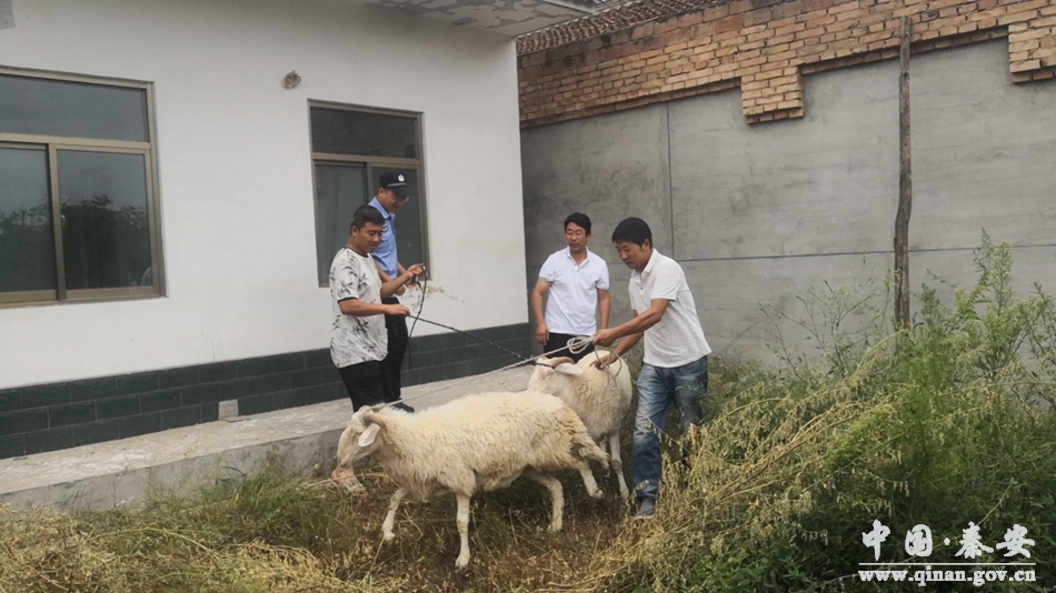8月15日8时许,叶堡派出所接到辖区李坪村村民伏某某报警称,其用于庙会祭祀活动用的两只绵羊丢失,价值1万余元。接报警后,叶堡派出所立即组织民警赶赴现场走访调查,民警勘查了四周的现场情况,并未发现被盗痕迹,结合羊圈周围分散的羊蹄印,民警排除了绵羊被盗的可能。随后民警调取了附近多处监控,发现两只绵羊于15日清晨5点55分经过村口附近,随即,民警一边安抚报警人情绪,一边发动周围群众,扩大搜索范围,经过4个多小时的地毯式搜索,民警最终在李坪村村口的荒地中找到了丢失的两只绵羊,看到失而复得的羊,伏某某及其家人对公安民警的帮助万分感激,连声道谢。