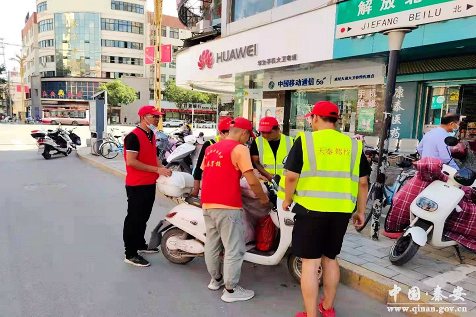 突出重点,严管路面。依托路面勤务,城区中队分别在解放路、成纪大道、太白街等路段多点布控,采取设置临时检查点和路面巡逻防控等方式严厉查处车辆乱停乱放;非机动车在机动车道内行驶、逆向行驶、随意掉头、闯红灯、不按道行驶;行人闯红灯、不走人行道、乱穿马路等显性交通违法行为;三轮车、货车、工程车、渣土车等超速、超载、违反禁令标志通行;摩托车、电动车不佩戴安全头盔、超载、闯红灯、不按车道行驶、加伞等交通违法行为,重点突出“四个严查、两个纠正”。