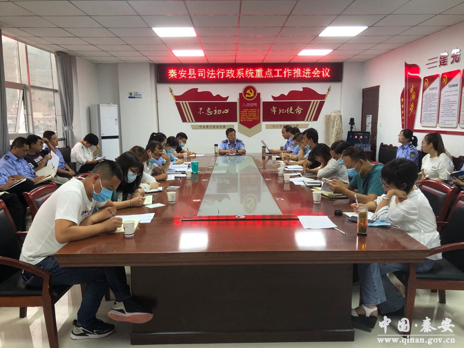 8月16日上午,秦安县司法局召开全县司法行政重点工作推进会议,局班子成员,司法所长,处、所、中心负责人,各股长共计30余人参加。