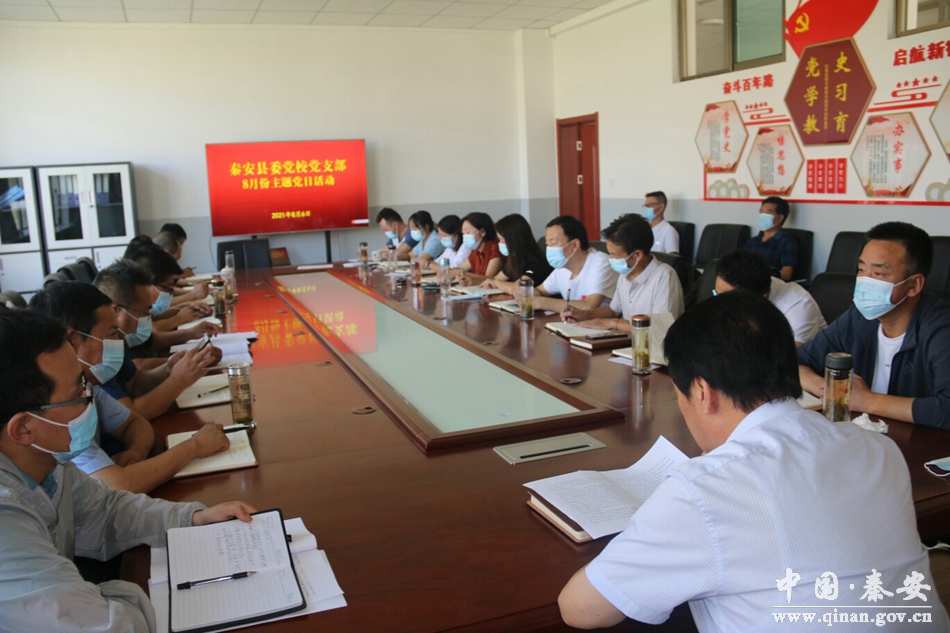 8月6日,按照县委组织部要求,秦安县委党校党支部扎实开展了8月份主题党日活动。围绕学习习近平总书记在庆祝中国共产党成立100周年大会上的重要讲话精神,干部职工开展了第四次专题研讨;同时深入离退休干部人员家中,动员离退休干部接种新冠疫苗。