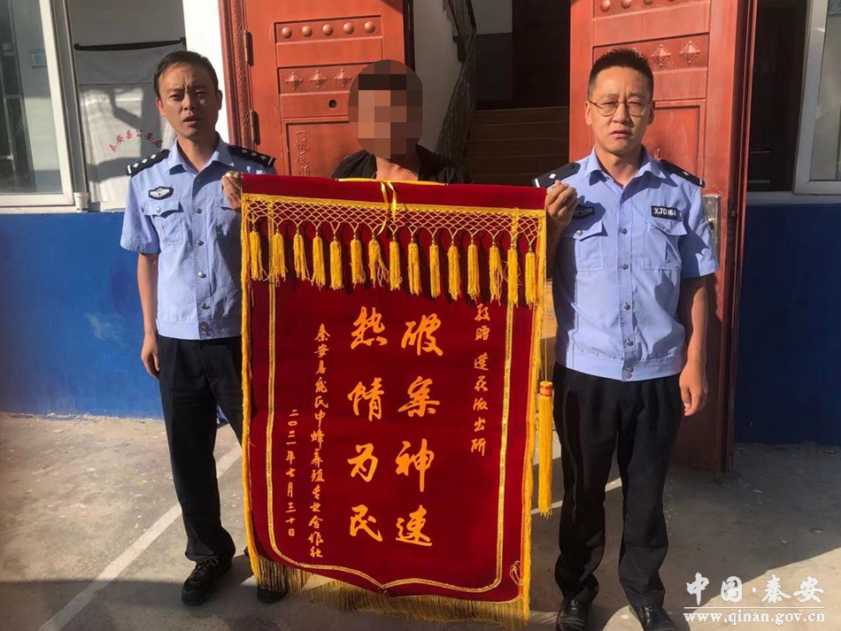得知嫌疑人归案,蜜蜂如数追回,庞某感动不已,特意制作这面锦旗送到派出所,以感谢民警关注民生、快速破案的工作作风。