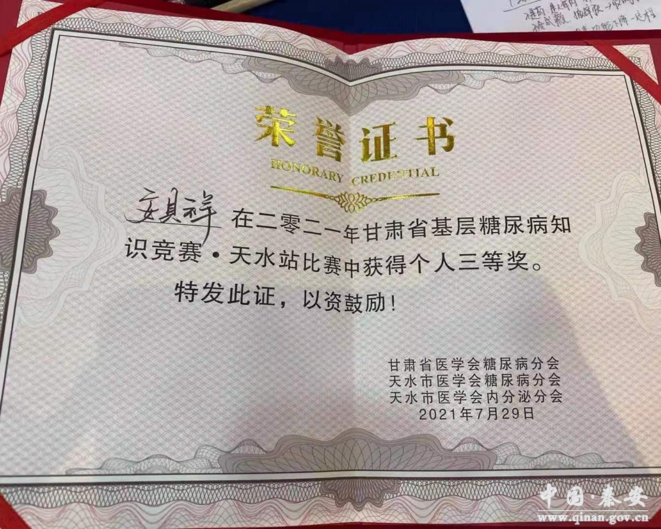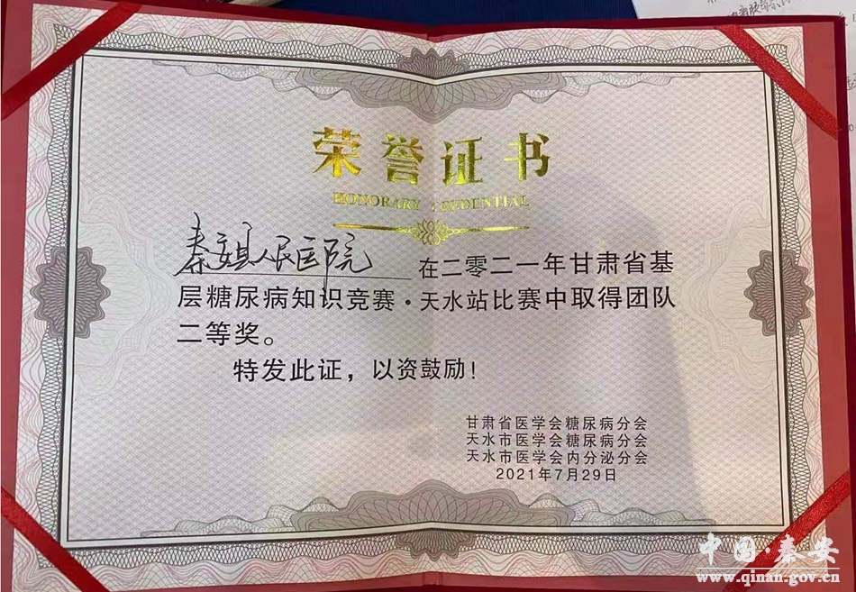 “甘肃省基层糖尿病知识竞赛•天水站”竞赛活动中,我院以优异成绩的取得,不仅彰显了秦安县人民医院医护团队拼搏争先的团队意识和进取精神,而且为医院糖尿病等慢病的规范化管理、规范化诊疗、促进糖尿病专科化奠定了坚实基础。
