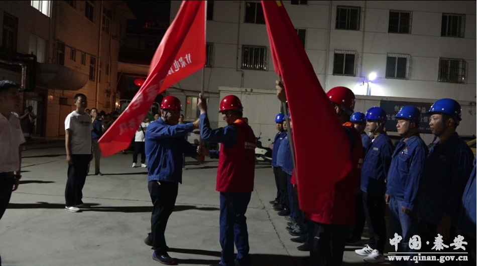 在临行之前,国网秦安县供电公司举行了授旗仪式,公司领导在仪式上强调:“企业不仅是一种商业力量,更是一种社会力量,无论任何时候,我们都要坚持致力于企业社会职责,回报社会。”铿锵有力的话语不仅使众人的决心更加坚定,同时也传递着“一方有难,八方支援”的团结精神。带着众人凯旋的期盼,救援队伍于晚11时正式奔赴河南灾区。