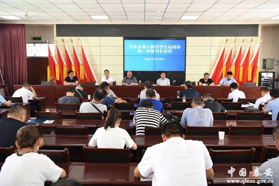 7月18日,天水市第六届中学生运动会组委会在秦安县职校会议室召开第一次秘书长会议,组委会竞赛部相关领导、各代表团秘书长及裁判长共计50余人参加会议。