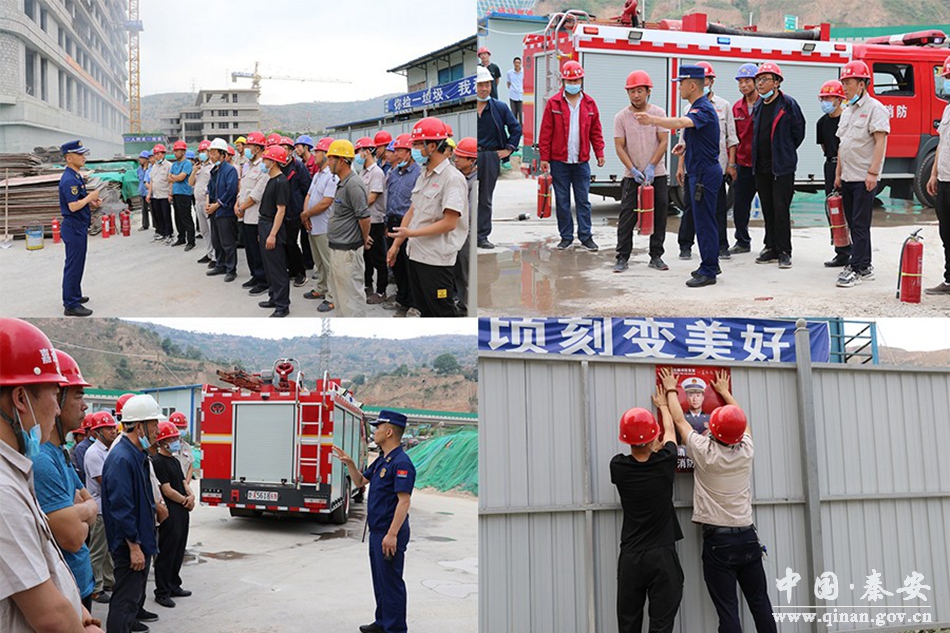 聚焦在建工地,加强监督检查及培训演练。连日来,秦安县消防救援大队联合住建、应急、市场监管监等职能部门,深入辖区在建工地开展消防安全专项检查。同时,大队以“防消联勤模式”开展消防安全知识培训及模拟灭火演练5次,共发放各类消防宣传材料520余份,展出宣传展板15块,转载发布有关消防安全宣传的短信、微信千余条。通过培训演练为辖区在建工地培养更多消防安全“明白人”。