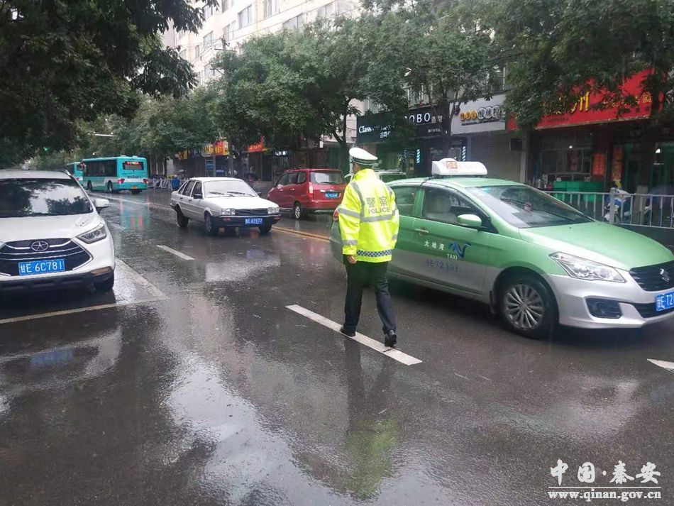 7月15日,雨如期而至,极端天气造成城区主干道出现多处积水点,给广大驾驶人和出行群众带来了极大的交通安全隐患,严重影响了道路交通安全。雨情就是警情,保护群众出行安全刻不容缓。为确保雨天道路通行安全有序,秦安县公安局交警大队主动出击、积极应对,全力做好雨天道路交通安全管理工作,广大交警在倾盆暴雨中执勤,他们扛起保障道路安全畅通的重担,他们的身影成为最温情的城市路标。