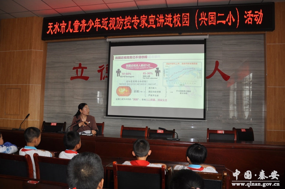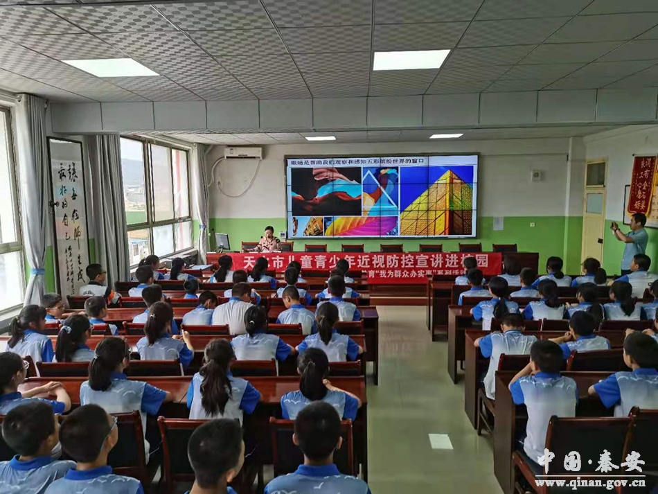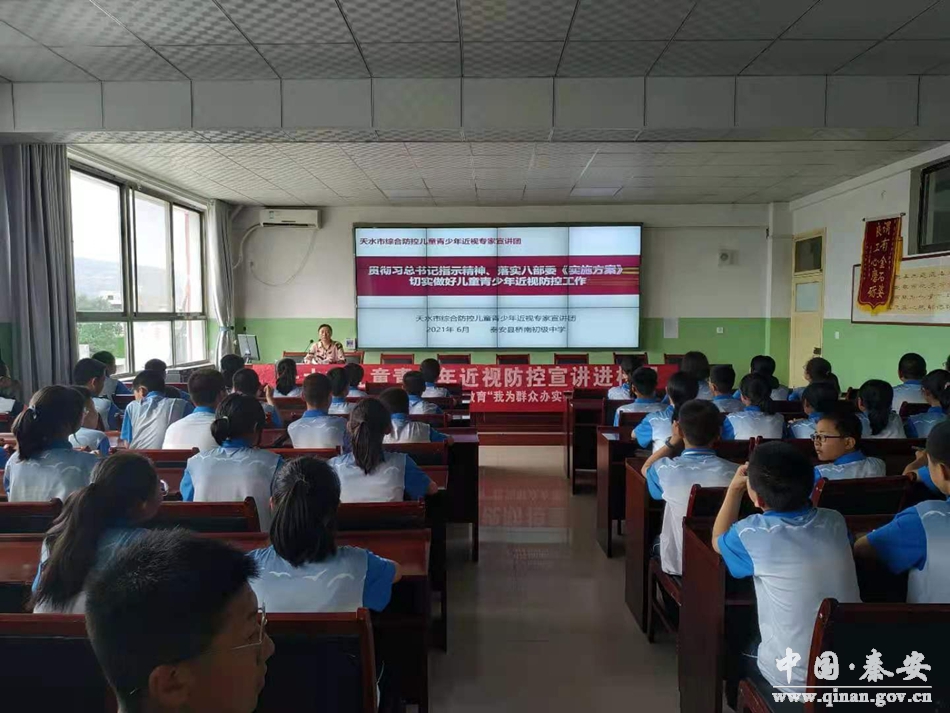 为贯彻落实习近平总书记关于学生视力健康问题的重要指示精神及教育部等八部委印发的《综合防控儿童青少年近视实施方案》,切实加强学生视力保健工作,6月21日,秦安县人民医院在兴国二小和桥南中学开展了“秦安县儿童青少年近视防控专家宣讲进校园活动”,将党史学习教育转化为实际行动,积极为人民群众办实事。眼科医生马蓉蓉为学生们作了关于儿童青少年近视防控的知识讲座。