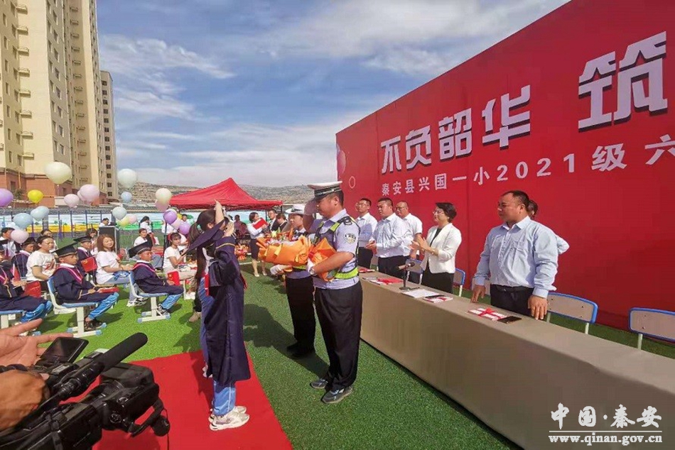 7月4日,秦安县公安局交警大队受邀参加了辖区第一小学六年级学生的毕业典礼,并上台接受来自广大师生的暖暖谢意。在同学们升往初中深造之际,他们满怀感激,将手中鲜花献给了多年以来陪伴和守护自己的秦安公安交警。