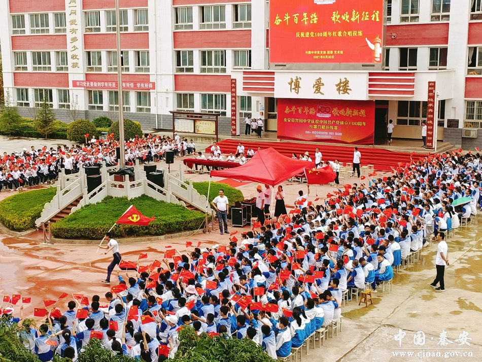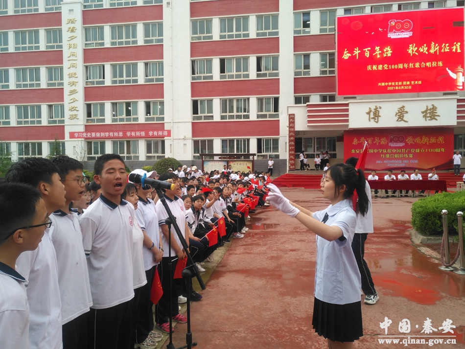 下午3时,秦安县兴国中学举行以“奋斗百年路 歌颂新征程”为主题庆祝中国共产党成立100周年的红歌合唱拉练赛活动,热情讴歌伟大的党、伟大的祖国和伟大的新时代。本次活动由兴国中学党支部书记王继存同志主持。