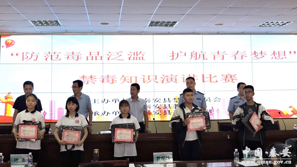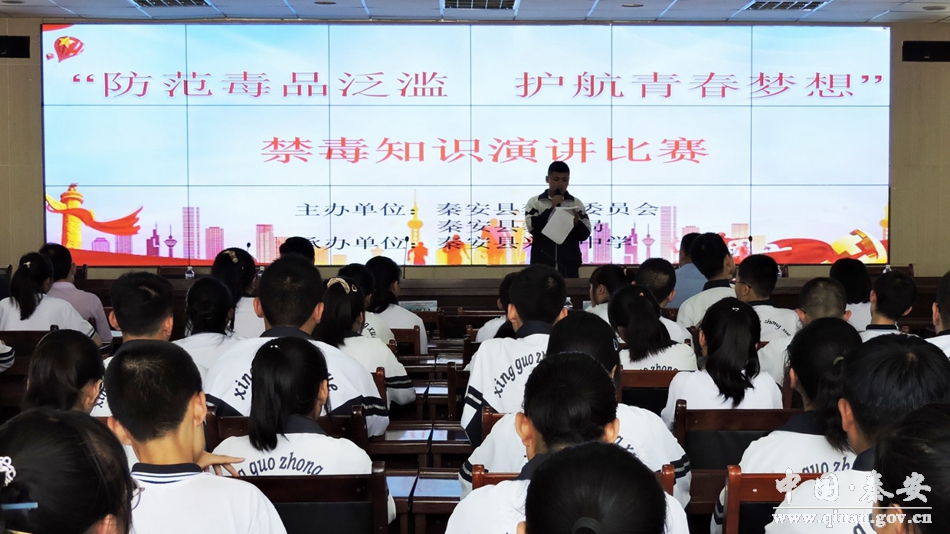 第34个国际禁毒日来临之际,为进一步提高在校学生对毒品危害的认识,不断增强在校学生参与禁毒斗争的主动性与积极性,有效防范新型毒品滥用,营造良好的校园环境。2021年6月25日下午,由秦安县禁毒办、秦安县教育局主办,兴国中学承办的以“防范毒品滥用、护航青春梦想”为主题的禁毒演讲比赛在兴国中学举行。