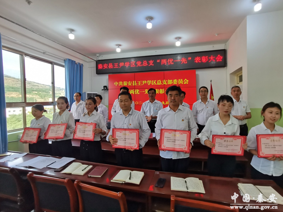 在庆祝中国共产党成立100周年之际,为树立典型,弘扬正气,激发教师热爱党、热爱祖国、热爱乡村教育事业的热情,促使教师铭记党的奋斗历程,筑牢使命担当。秦安县王尹学区党总支于6月29日召开“两优一先”表彰大会,王尹学区全体成员、王尹学区各小学校长、幼儿园园长以及全体在职党员共计50余人参加表彰大会。