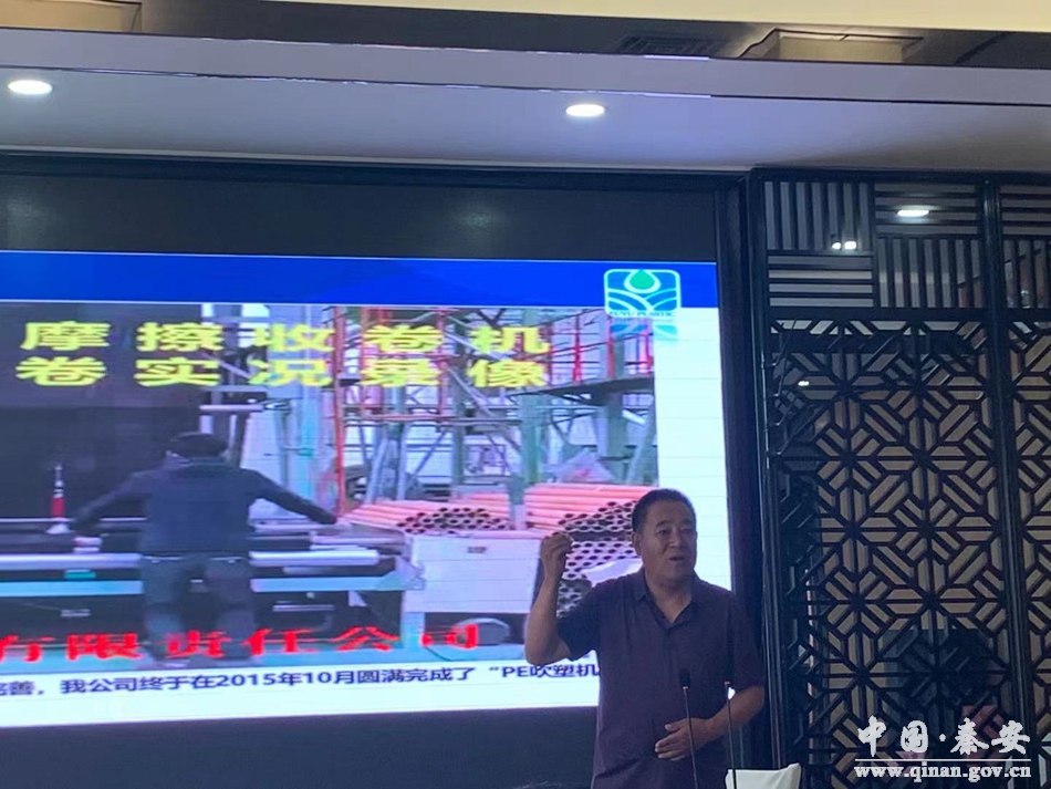 在宣讲会上,陈二虎讲述了自己的从军经历,从最早创办西川酱油厂、天水西桥塑料制品厂,发展到现在的甘肃福雨塑业有限责任公司,企业由小变大,由弱变强,产品多次被评为全国市场消费者首选放心品牌、甘肃省质量技术监督局认定的合格产品、中国著名品牌、甘肃名牌产品、“甘肃省著名商标”“中国农膜行业优秀品牌”。富而思源,回报社会,在个人事业得到发展的同时不忘回报社会,积极为秦安的经济建设做出了贡献。