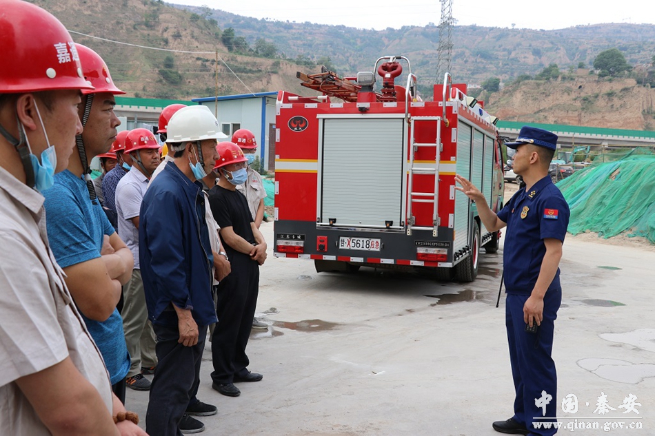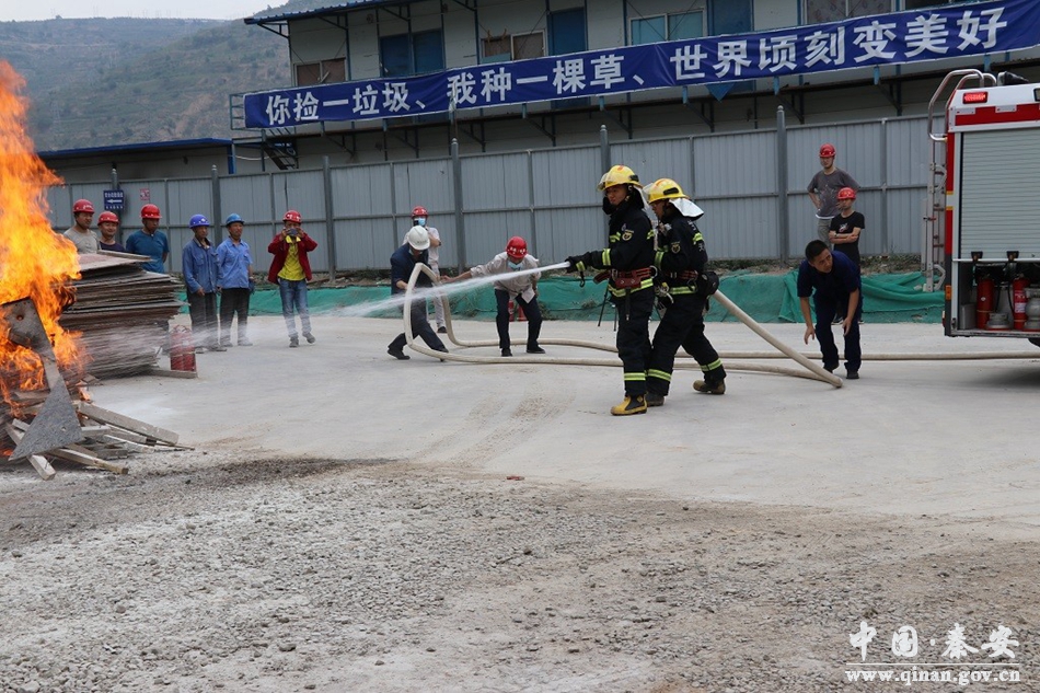 眼下已进入夏季高温时节,在建工地油毡、油漆、木材等易燃、可燃物多,引火源较多,人员流动性大,且防火意识较差,给火灾防范工作带来巨大挑战,为进一步加强建筑施工现场作业安全,增强工人消防安全意识,提高工人对火灾的应急处置能力。6月24日,秦安县消防救援大队以“安全生产月”为契机,开展了消防安全知识培训及模拟灭火演练。