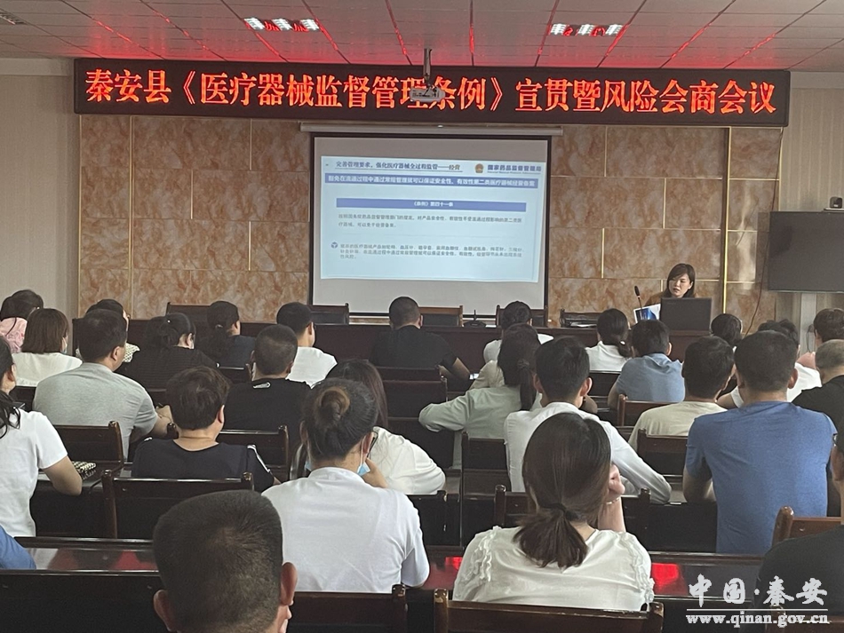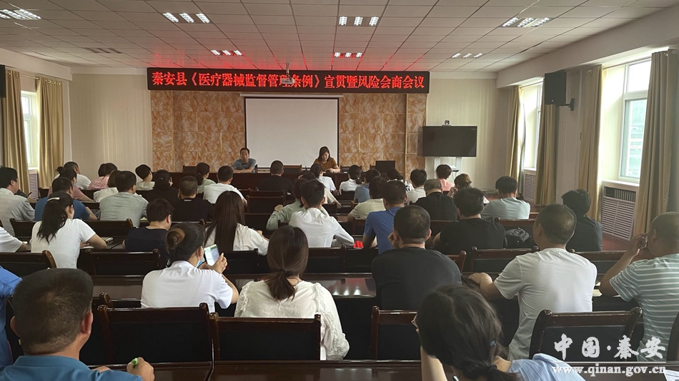 为进一步加强普法宣传,推动新修订《医疗器械监督管理条例》的贯彻实施,切实加强对全县医疗器械经营使用单位监管,6月23日,秦安县市场监管局组织召开《医疗器械监督管理条例》宣贯暨风险会商会议,全县80余家医疗器械经营使用单位负责人及各监管所有关执法人员参加会议。