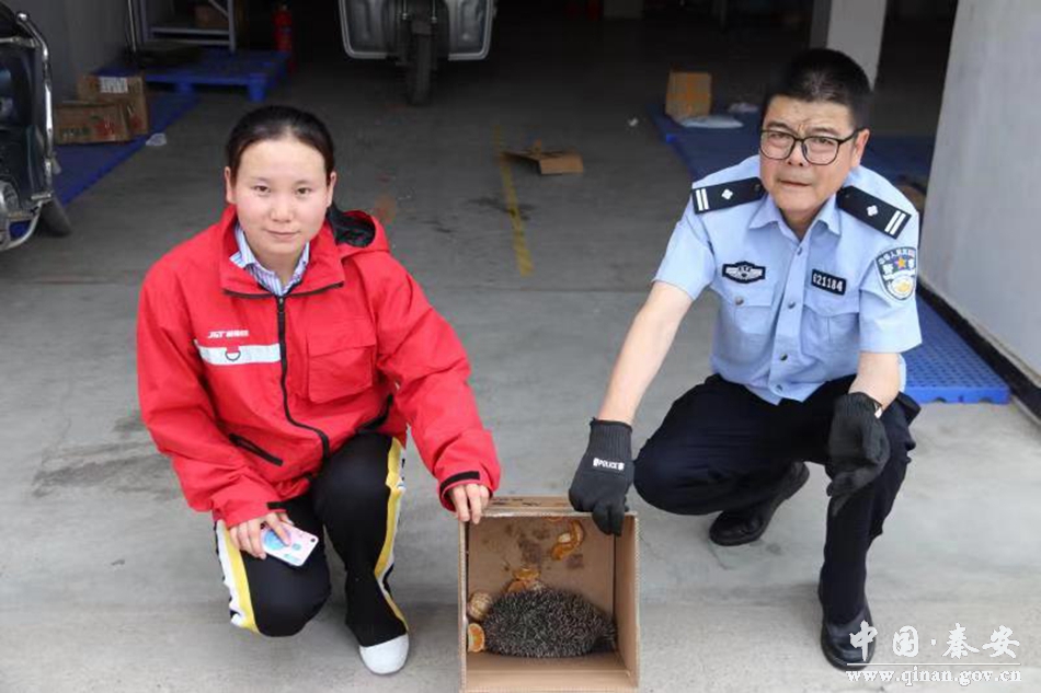 6月7日,秦安县公安局森林警察大队接110指令:有群众在解放北路发现一只疑似刺猬的野生动物,急需救助!