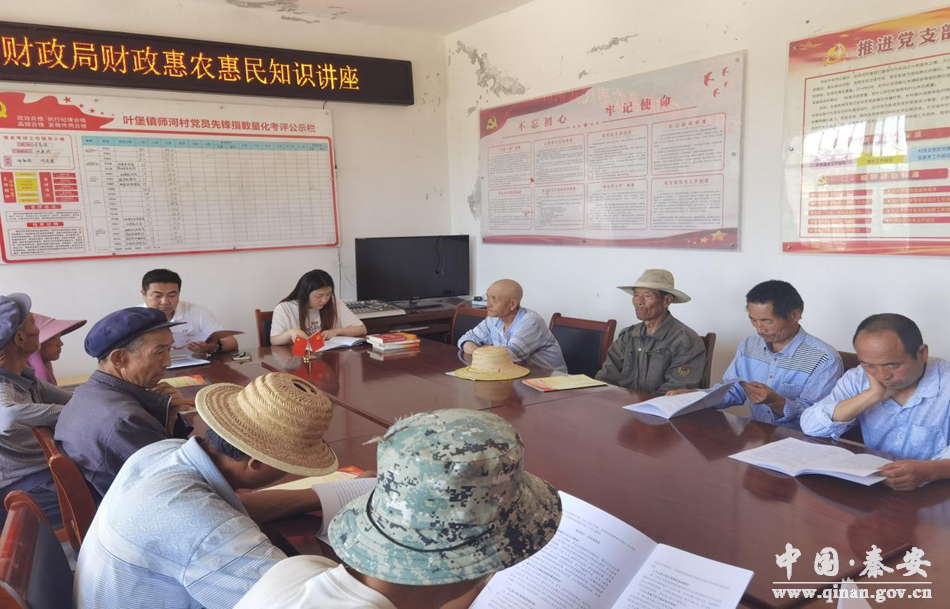 为切实推进“为党旗添光彩,为群众办实事”实践活动,进一步加大财政惠民惠农政策宣传力度,提高群众的政策知晓率,促进乡村振兴战略实施,6月11日,秦安县财政局组织党员干部到叶堡镇师河村开展财政惠民惠农政策宣讲活动。