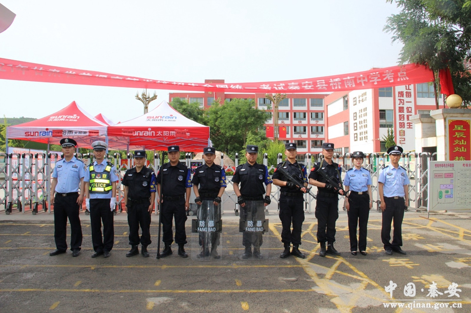 协同配合,履职尽责。秦安县公安局多警种密切配合,充分发挥各部门职能作用,试卷押运及保密、考点、驻地等安保组加强重点区域的安保,严密防范各类突发性案事件;治安、巡警大队,城关、北关、秦南派出所在考试期间加强各考点周边治安巡逻,优先及时处理考点的报警并全力做好突发事件的现场处置工作;交警部门在考点及周边重要路口、路段设立执勤点和机动巡逻组,不间断地加强巡逻疏导,防止在考前、考后的人流、车流高峰期时段,出现交通堵塞现象;户政及各派出所户籍窗口开通了高考考生户籍服务“绿色通道”;网侦大队加强互联网涉考信息的监控;其他各组也按各自职责开展了工作。