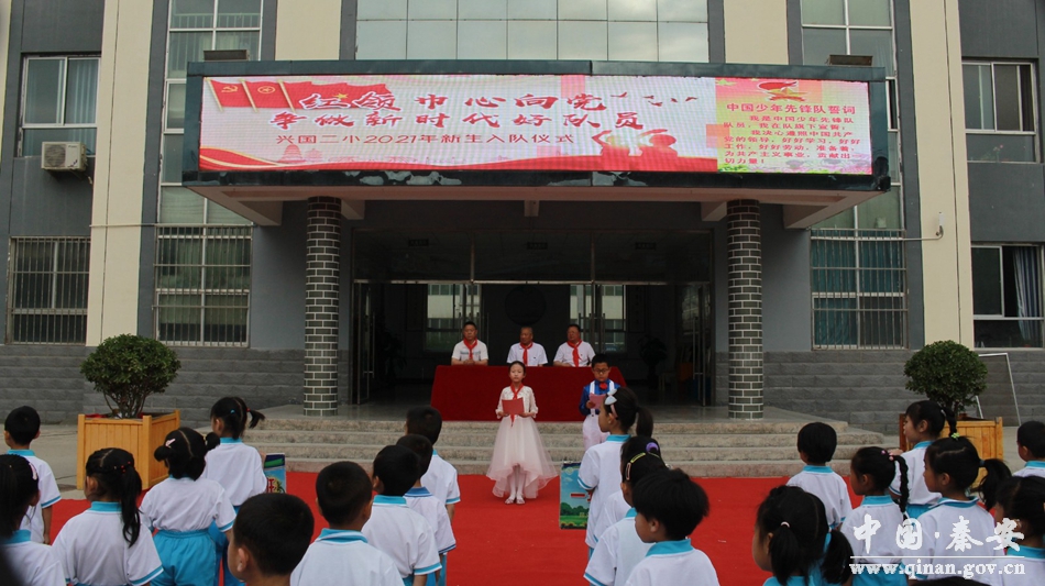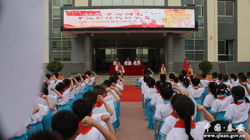 为庆祝中国共产党成立100周年,用党的奋斗历程和伟大成就鼓舞少先队员的斗志、明确前进方向,切实增强少先队员的光荣感和组织归属感。2021年5月27日上午,兴国二小少先队大队部组织一年级新生及部分师生在学校升旗广场举行以“红领巾心向党,争做新时代好少年”为主题的兴国二小2021年一年级新生入队仪式。
