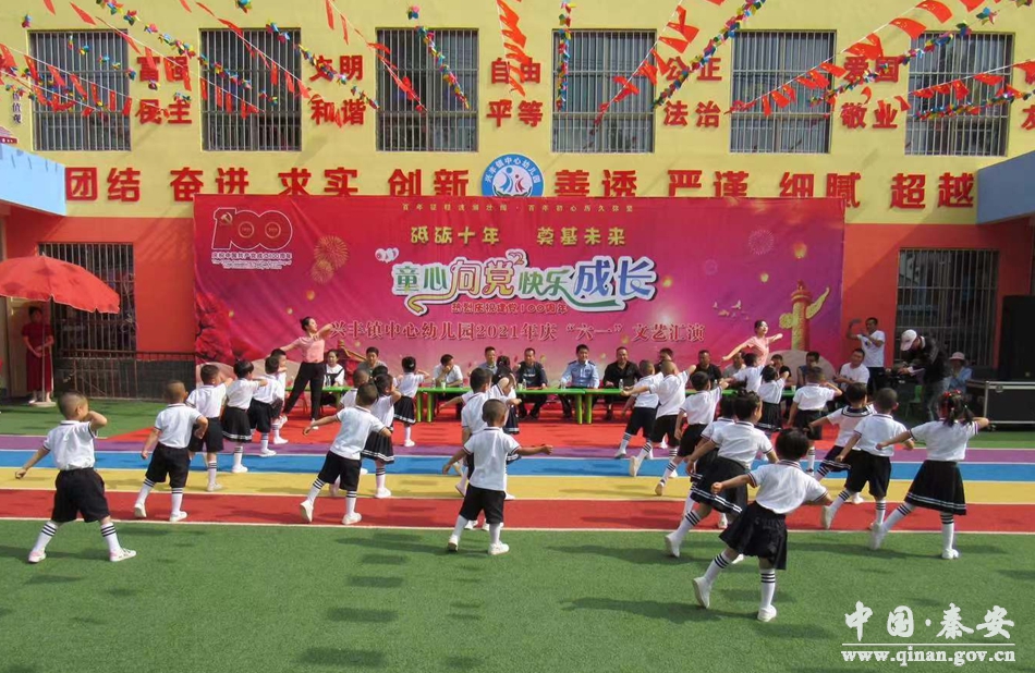 2021年5月31日上午9时,在第71个“六一”国际儿童节来临之际,兴丰镇中心幼儿园举行了以“童心向党、快乐成长”为主题的传承红色基因,喜迎中国共产党成立100周年暨庆“六一”儿童节活动。