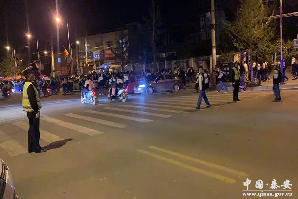 上下学时间,秦安县公安局交警大队民协警提前半小时来到辖区各学校门口,积极缓解学校门前的交通拥堵,对过往车辆和行人进行指挥,引导驾驶人规范停放,及时疏导接送学生的家长,减少学校门口的交通事故,同时加大校园周边交通违法行为的整治力度,确保校园门口及周边道路秩序井然有序。在学校门口的斑马线上,执勤交警适时用交通指挥手势拦停过往车辆,让学生们安全过马路。同时,加大对学校周边道路的巡查力度,严查接送学生车辆乱停乱放等交通违法行为,切实为广大师生筑起“安全墙”。执勤交警还提醒接送孩子的家长,要自觉遵守道路交通法规安全、文明出行,自觉养成文明出行习惯。