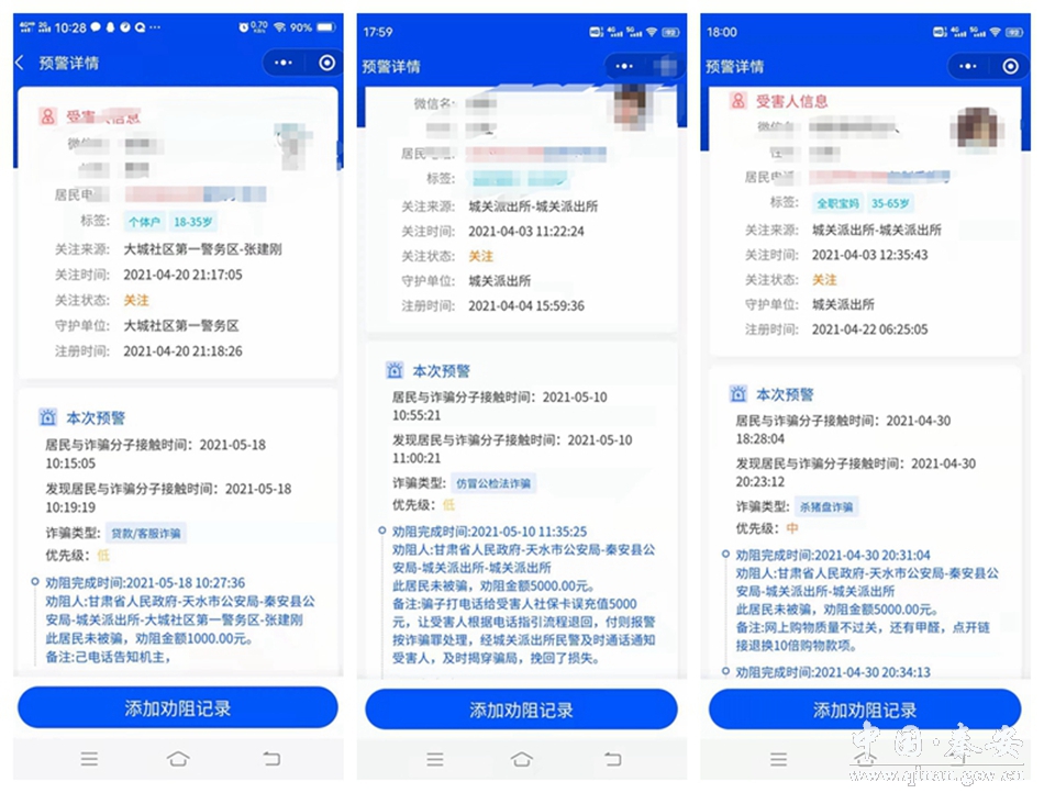 近日,城关派出所民警通过“金钟罩”预警提示,争分夺秒快速行动成功劝阻7起电信诈骗案,为群众挽回损失1.7万元。因为有了民警前期对防范电诈的广泛宣传,安装了“金钟罩”的当事人识破了不法分子的诈骗伎俩,避免了财产损失。