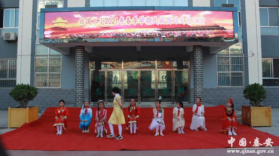 为深化民族团结进步教育,大力弘扬爱国主义精神,丰富校园文化生活,充分展示全校艺术教育成果,发展学生个性特长,提高广大师生鉴赏、展示艺术美的能力,陶冶高尚的情操,进一步增强我校优良的校风、教风和学风,加强校园精神文明建设。兴国二小以庆祝中国共产党成立100周年为契机,于5月20日举办了以“民族团结一家亲,童心向党颂恩情”为主题的民族团结进步宣传月系列教育活动——兴国二小2021年春季学期民族团结文艺汇演。