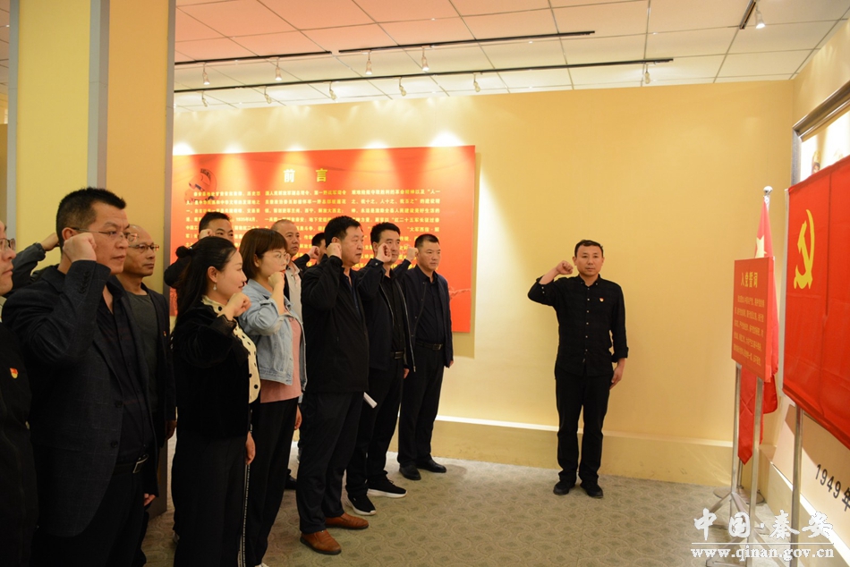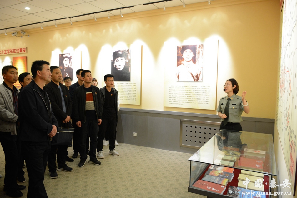 在讲解员的带领和介绍下,全体党员从“红二十五军长征过秦安” “一野总部在莲花” “党的秘密组织活动” “解放后秦安经济社会发展成就”四个展室回顾了辉煌壮丽、可歌可泣的历史岁月。一幅幅承载着辉煌历史记忆的老照片、一件件珍贵的历史文物,让全体党员干部学习和了解了中国共产党领导秦安人民进行革命、建设、改革的光辉历史。