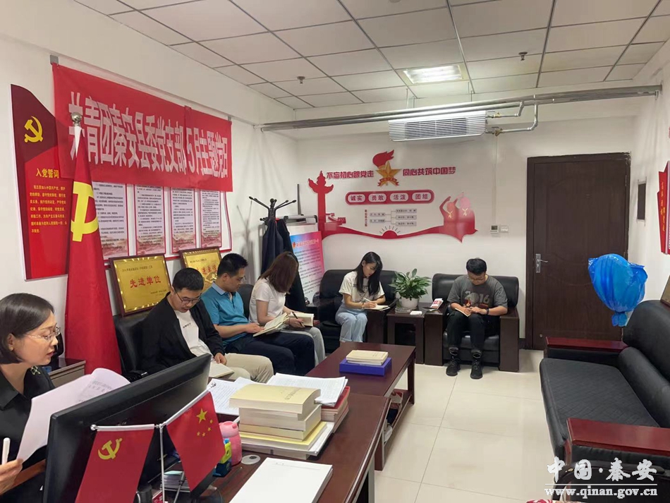 5月14日,团县委全体党员干部开展5月份主题党日活动。会上,团县委党支部书记带领大家学习了《中国共产党简史》第一、二章节。