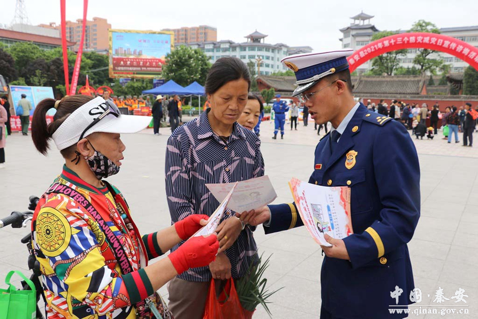 为加强防灾减灾知识和技能普及,提高居民的安全防范意识,5月12日上午,秦安县消防救援大队广泛开展以“防范化解灾害风险、筑牢安全发展基础”为主题的宣传教育活动,“面对面”向群众教授消防安全知识,提高群众防灾减灾意识。