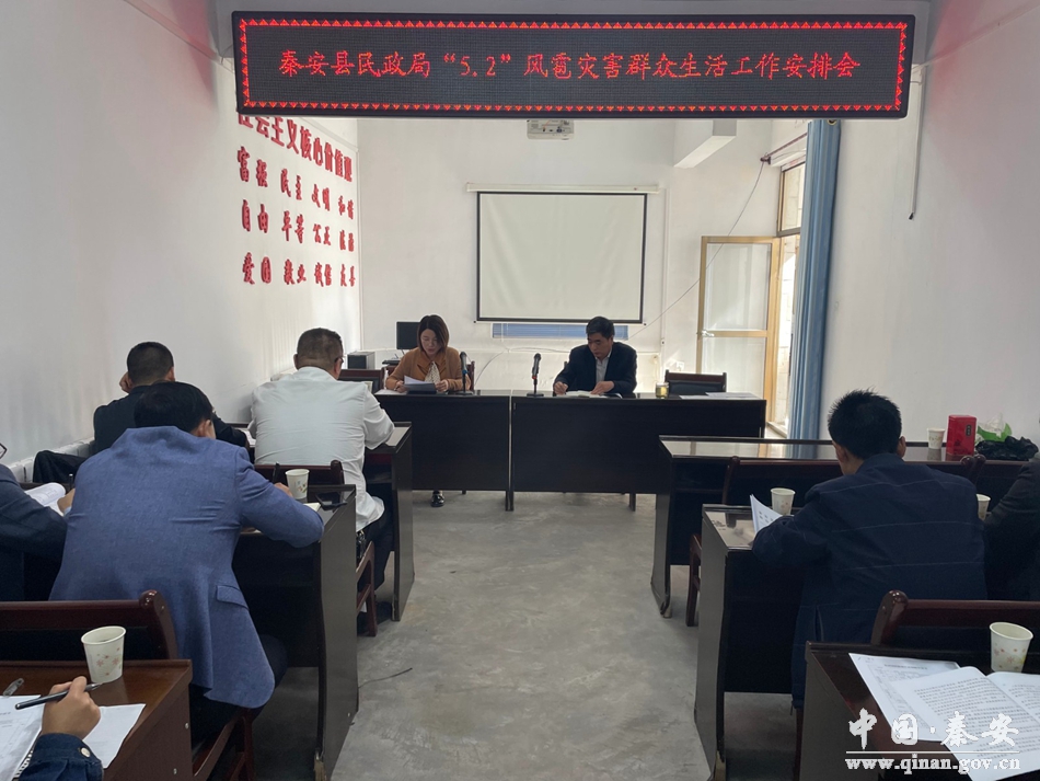 5月6日,秦安县民政局组织召开“5·2”风雹灾害群众生活安排会议,各镇分管领导、民政专干及县民政局低保办干部职工40余人参加会议。