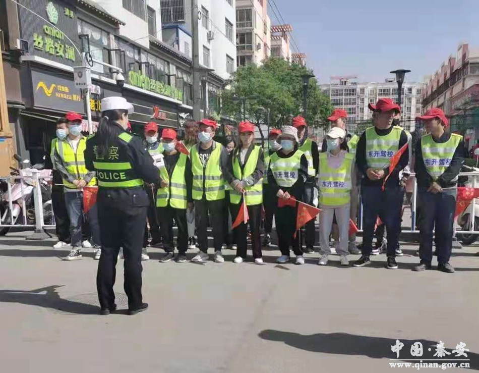 为进一步强化驾校交通安全宣传教育工作,大力增强学员交通安全意识、法治意识、文明意识,从源头上预防和减少道路交通事故。5月7日,秦安县公安局交警大队组织驾校学员开展文明交通劝导活动。